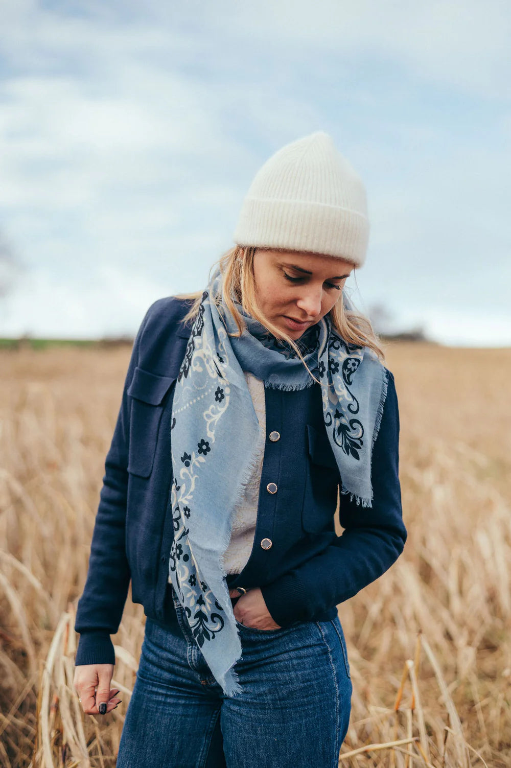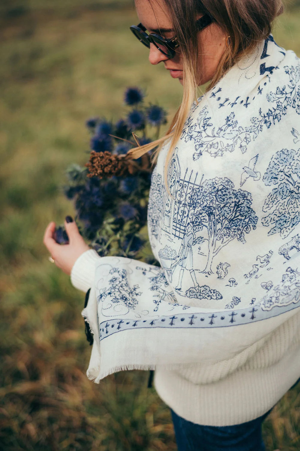 Bufanda azul Toile de Jouy