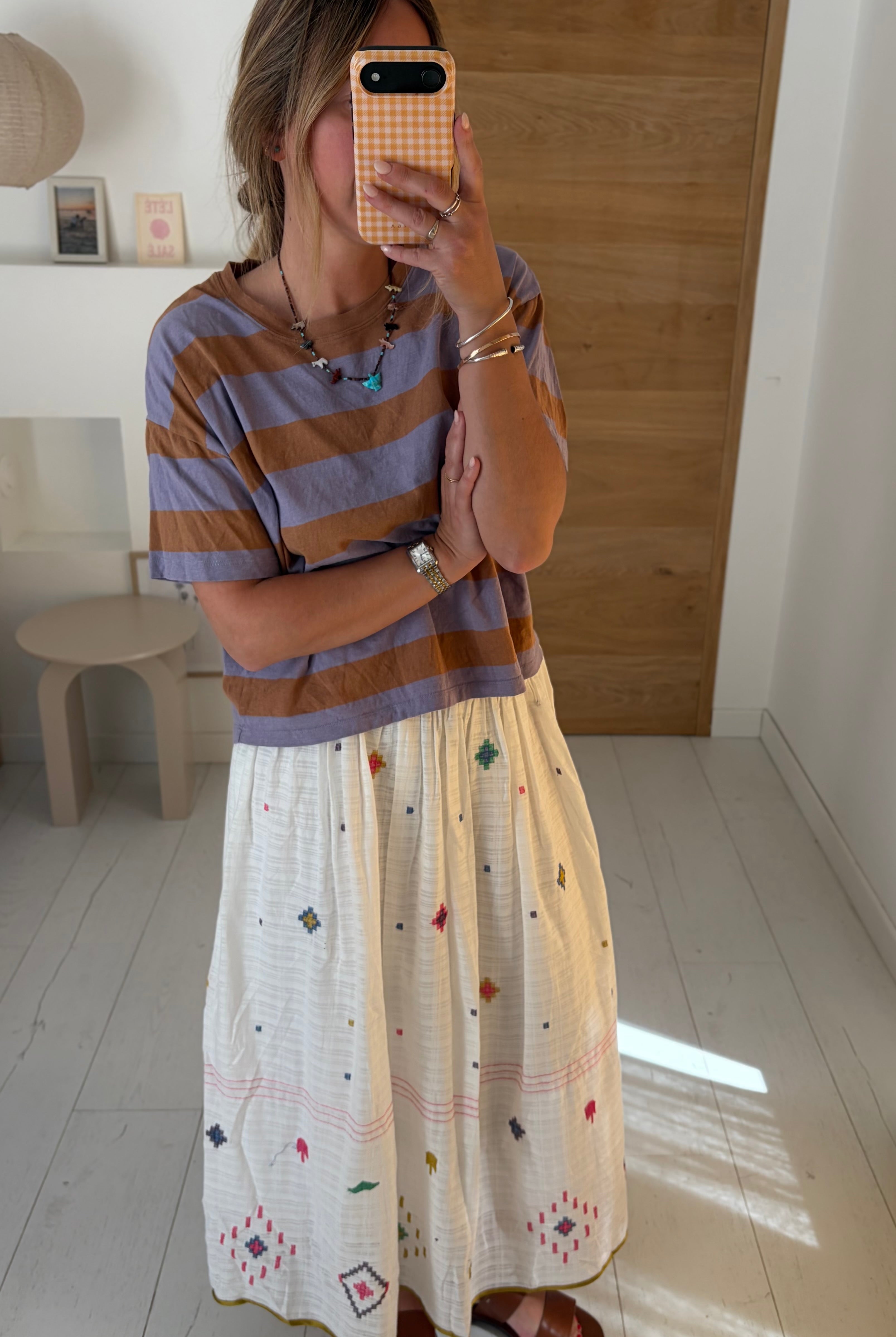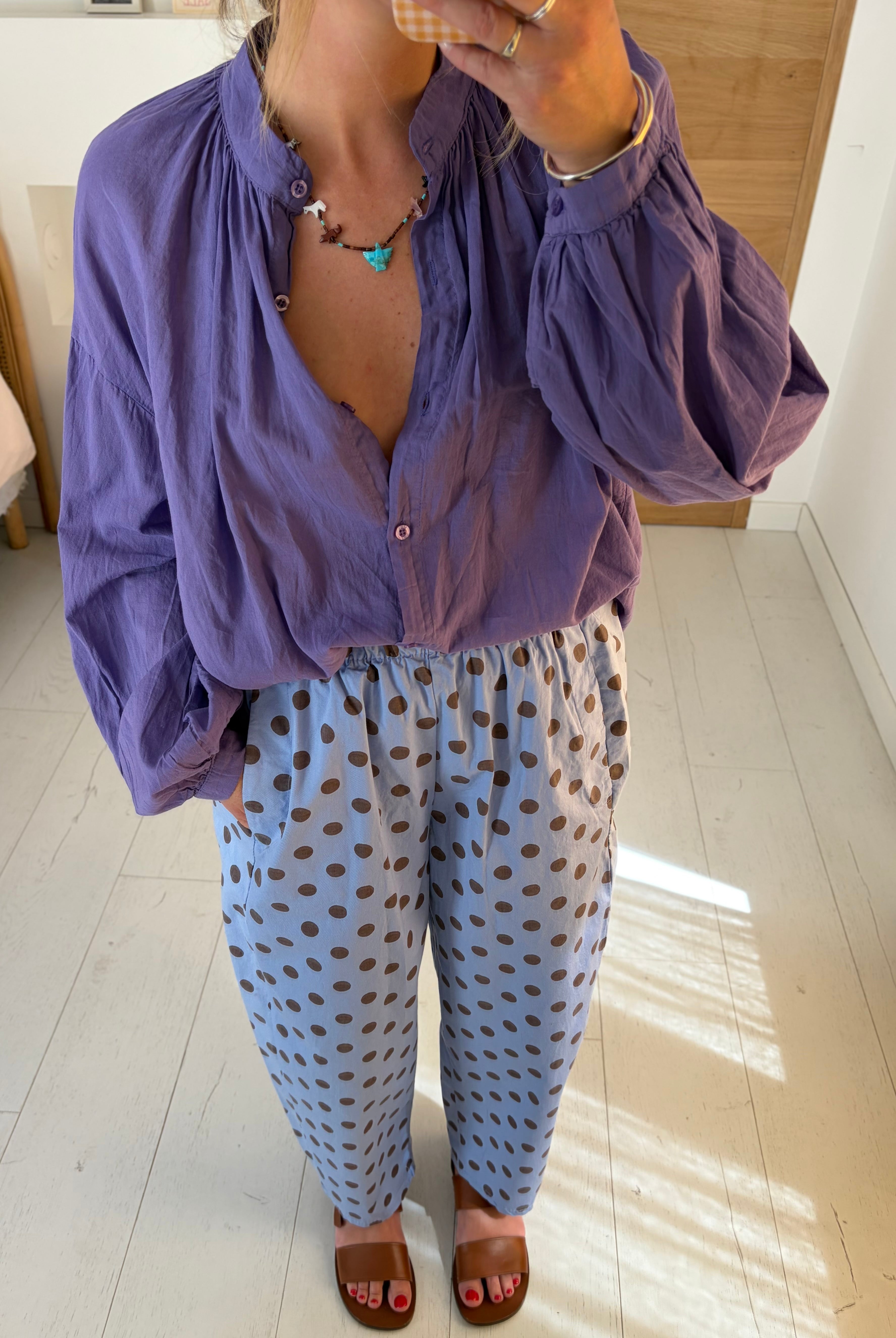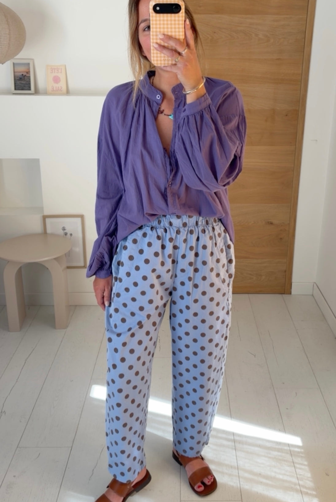 Blusas, pantalones ajustados, vestidos fluidos, cárdigans, chaquetas: cada pieza se elabora meticulosamente con materiales nobles (algodón, seda, lino). Un estilo bohemio refinado, cortes modernos y atemporales, una visión más consciente de la moda con creaciones sostenibles que pueden usarse durante años y combinarse infinitamente. La antítesis de la moda rápida y chic para mujeres con estilo.
