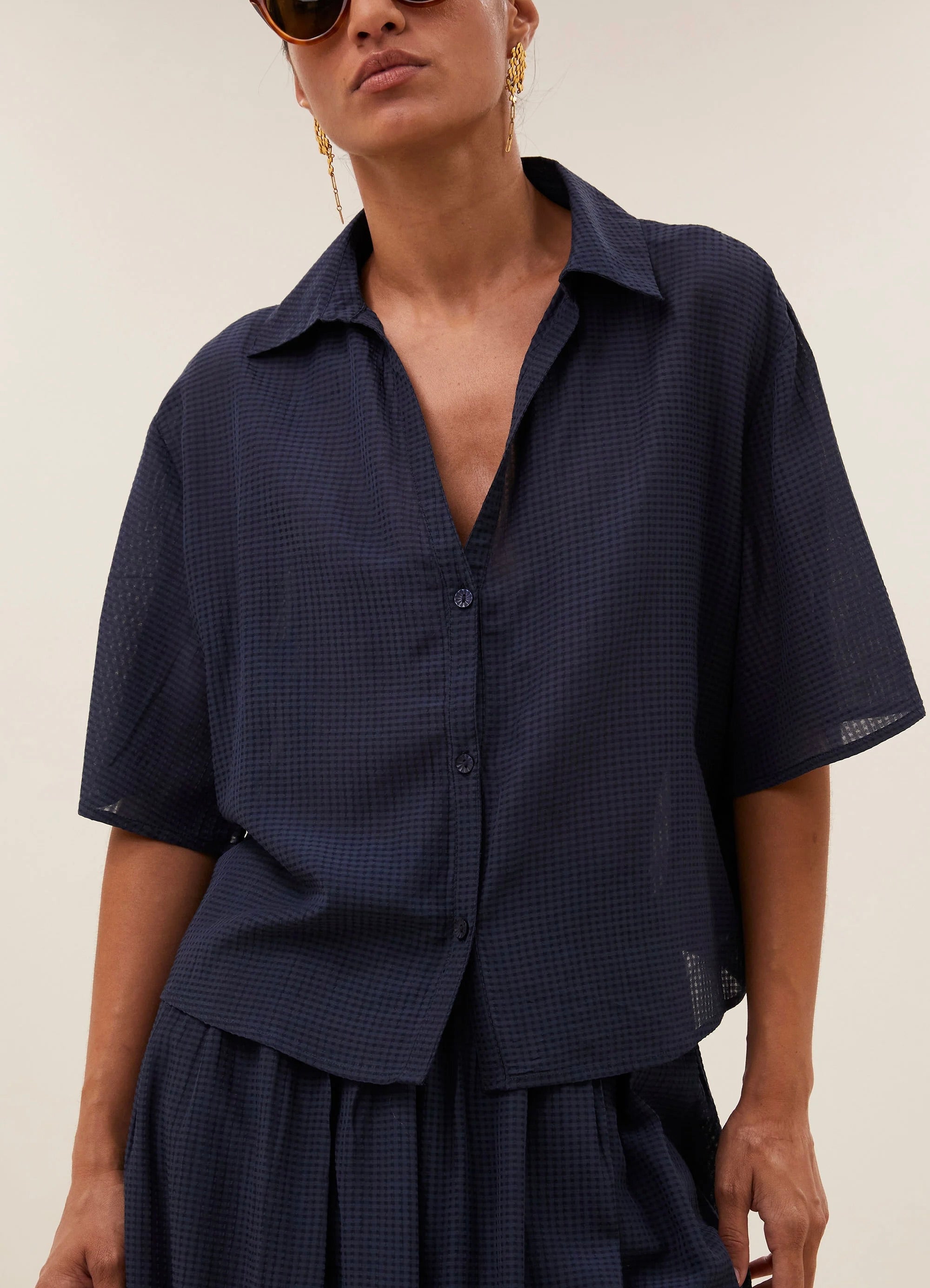 The kick blouse offre une coupe décontractée avec une silhouette ample qui est très agréable à porter. Dotée d’un col élégant et d’une fermeture à boutons, cette blouse est parfaite pour un look à la fois relax et tendance. Le motif à carreaux ludique en fait un ajout polyvalent à votre garde-robe quotidienne