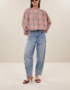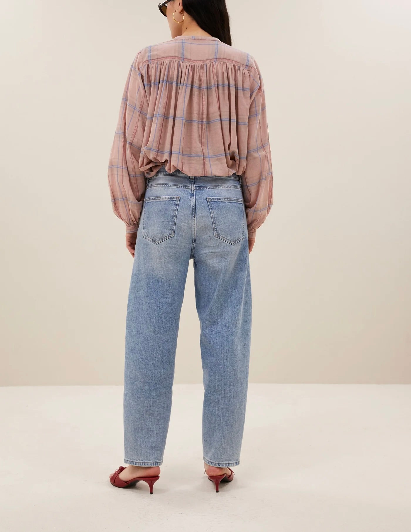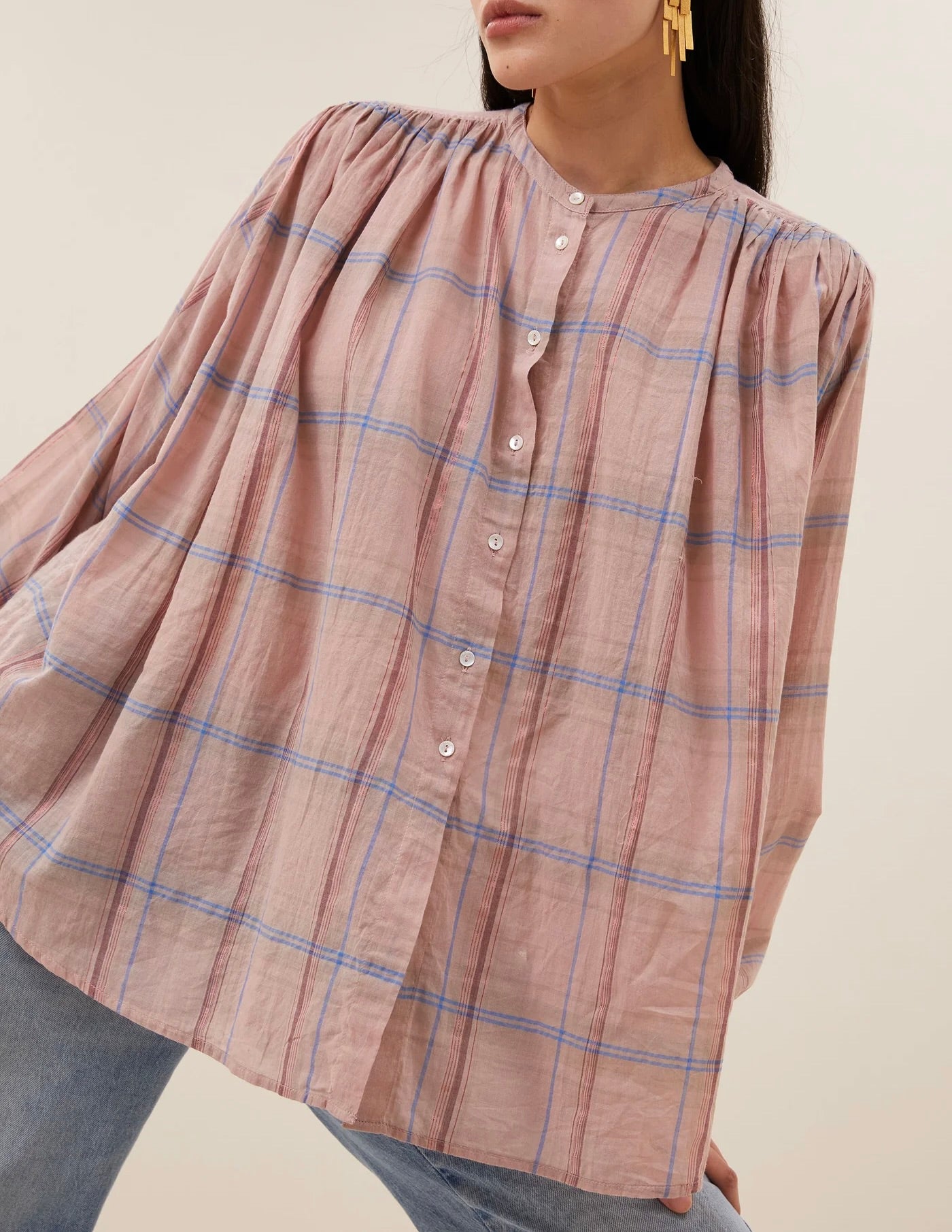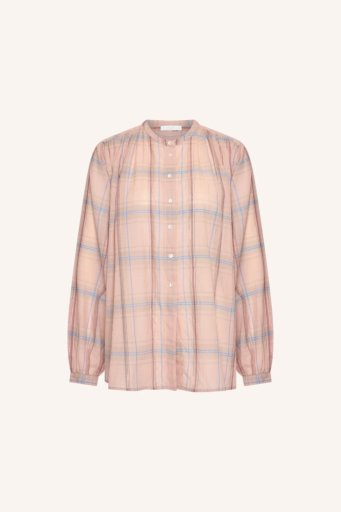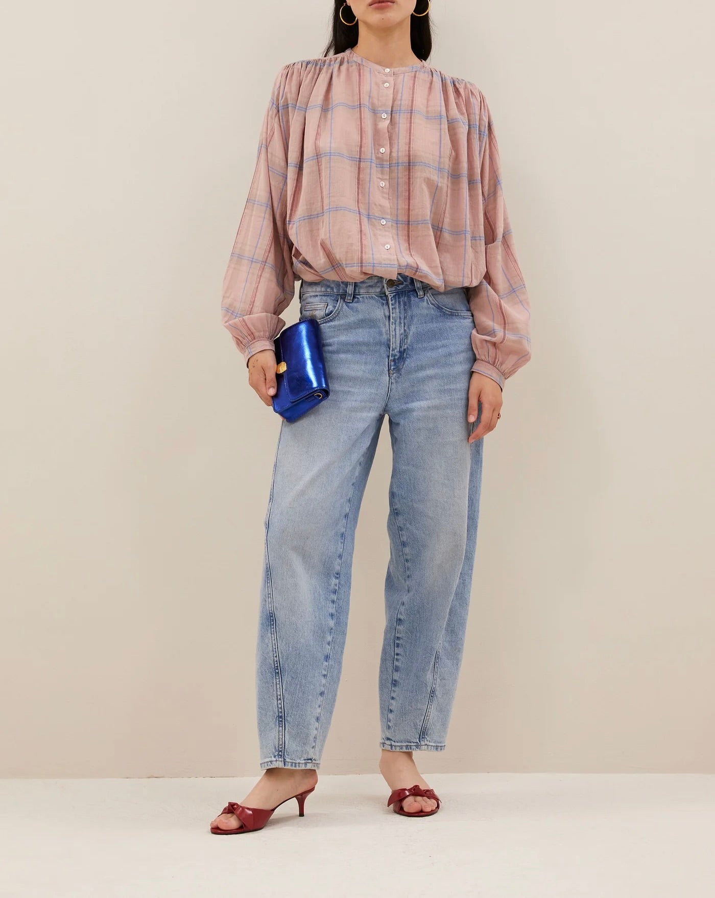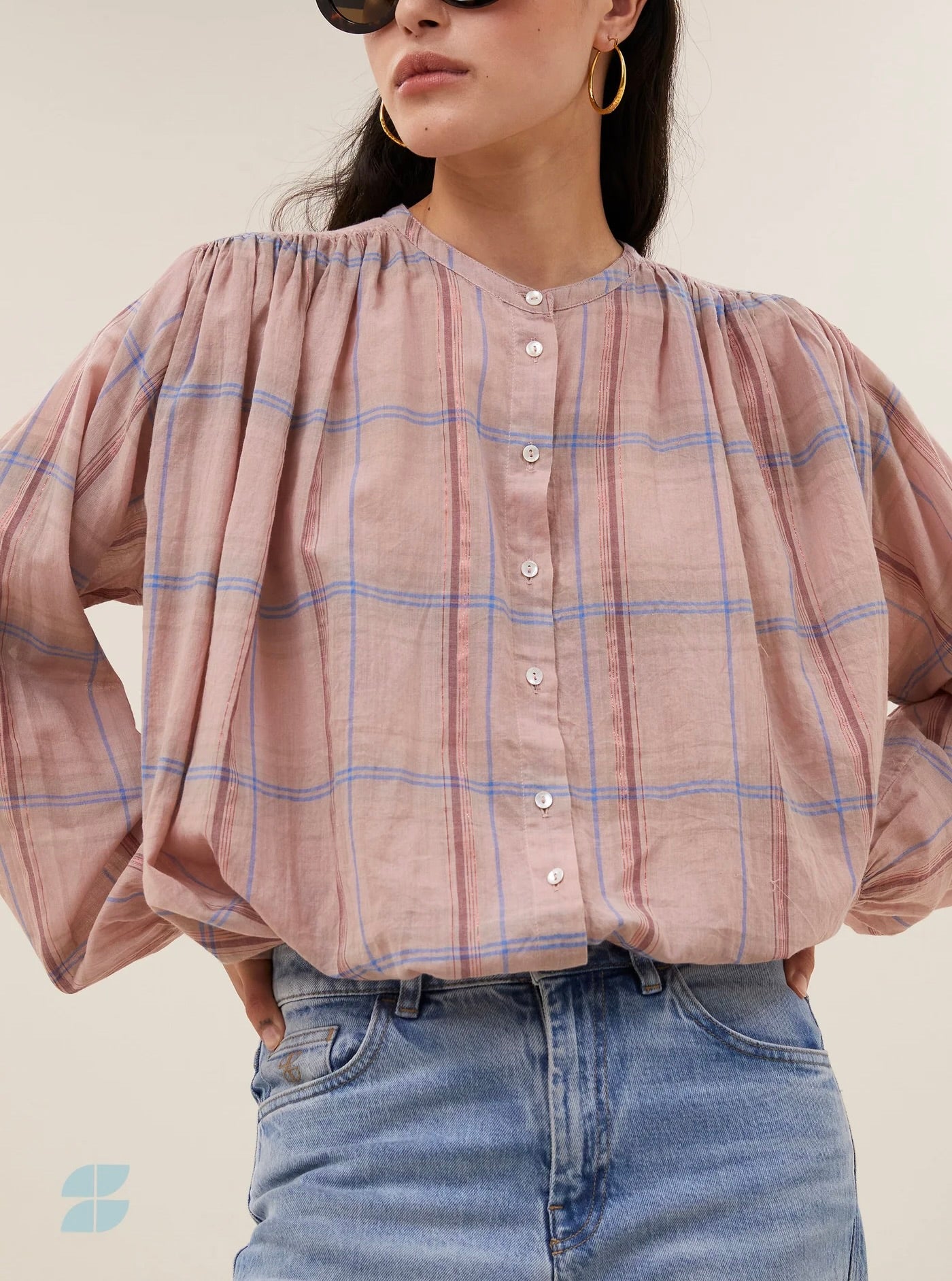 La blouse nyka pink check combine un style casual chic avec un confort optimal grâce à sa coupe régulière. Cette blouse présente un col rond et une fermeture à boutons, parfaite pour un look raffiné et sans effort, idéal au quotidien. Les manches longues et le motif discret en font un ajout polyvalent à votre garde-robe