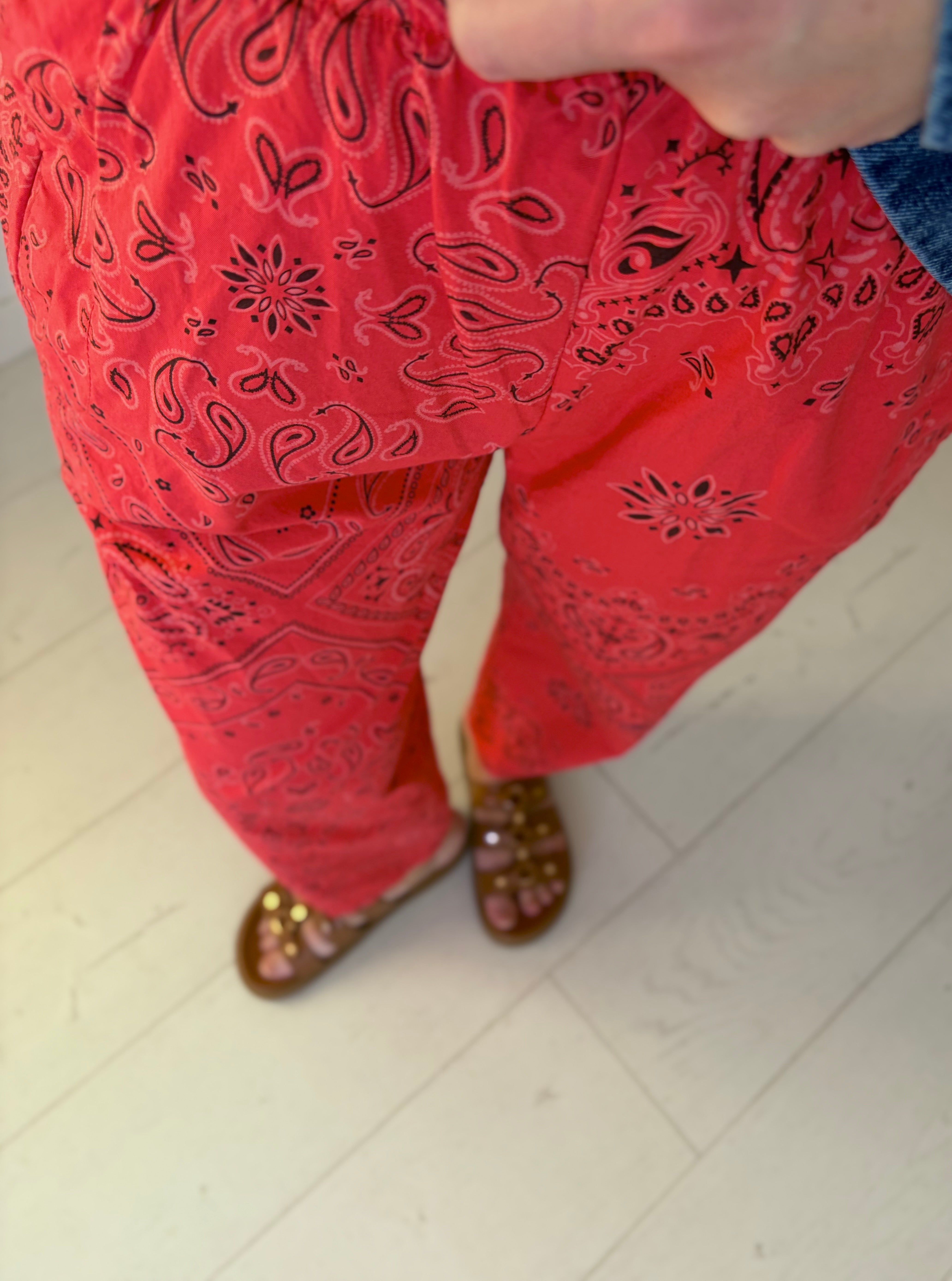 Cintura elástica, dos bolsillos delanteros.
