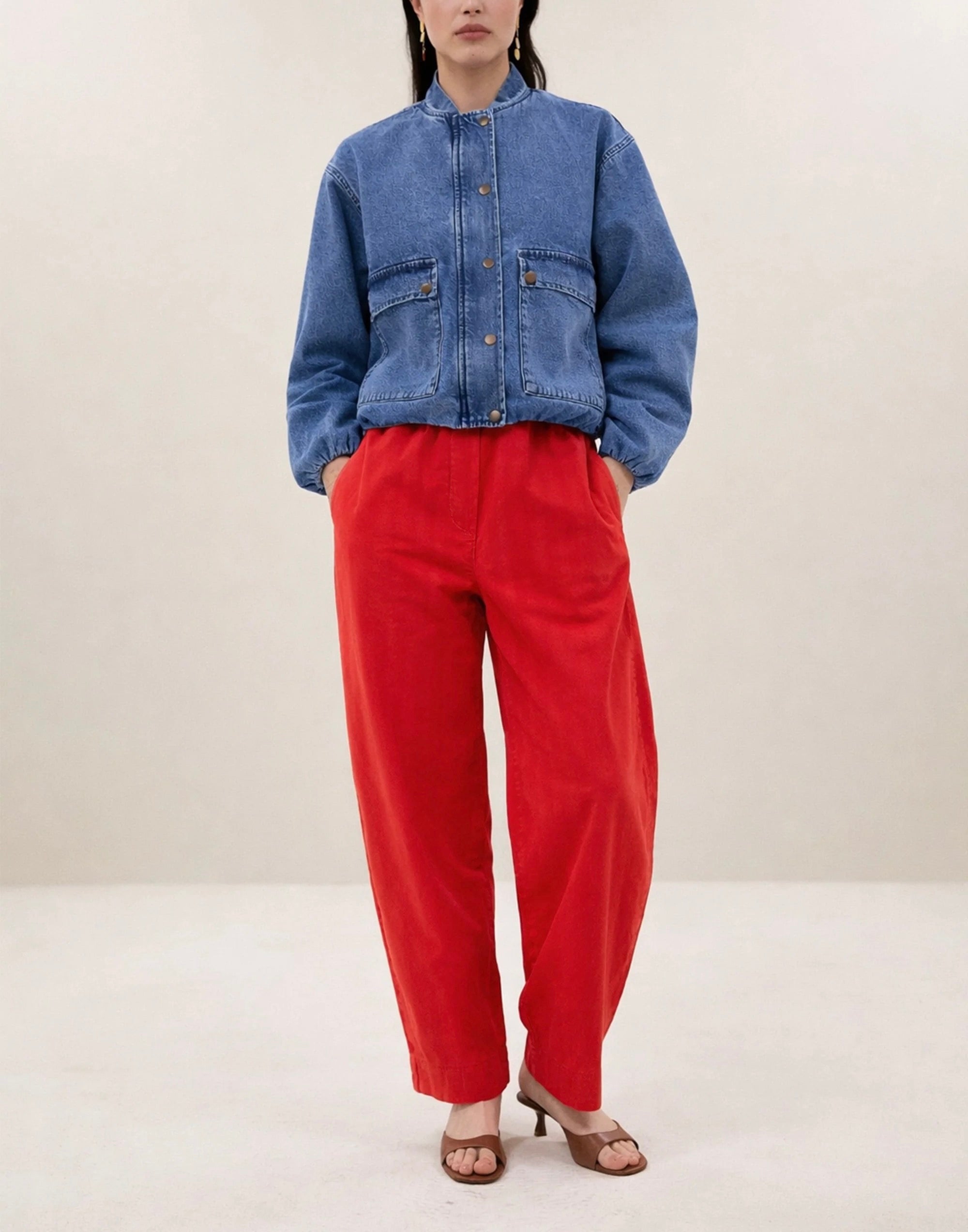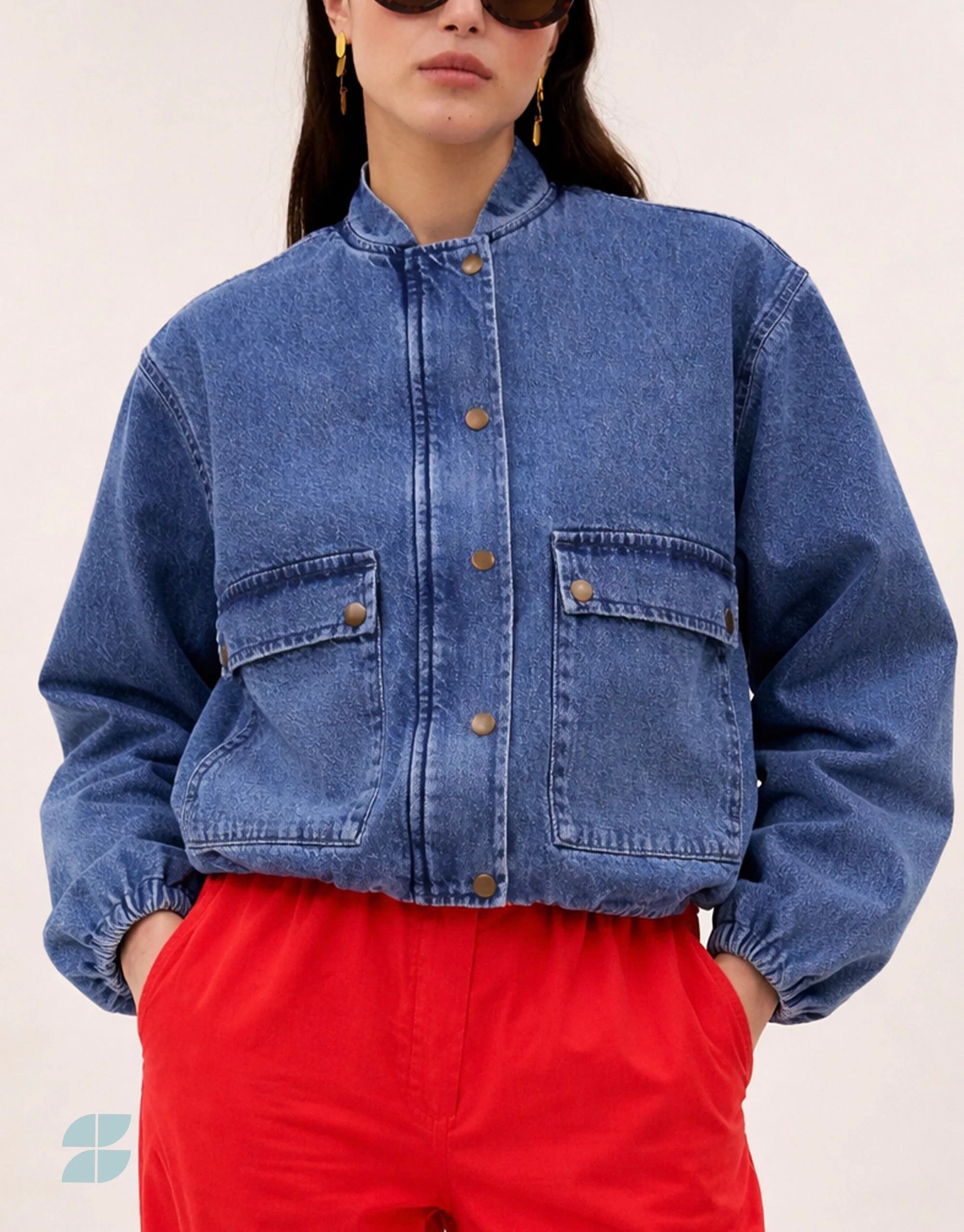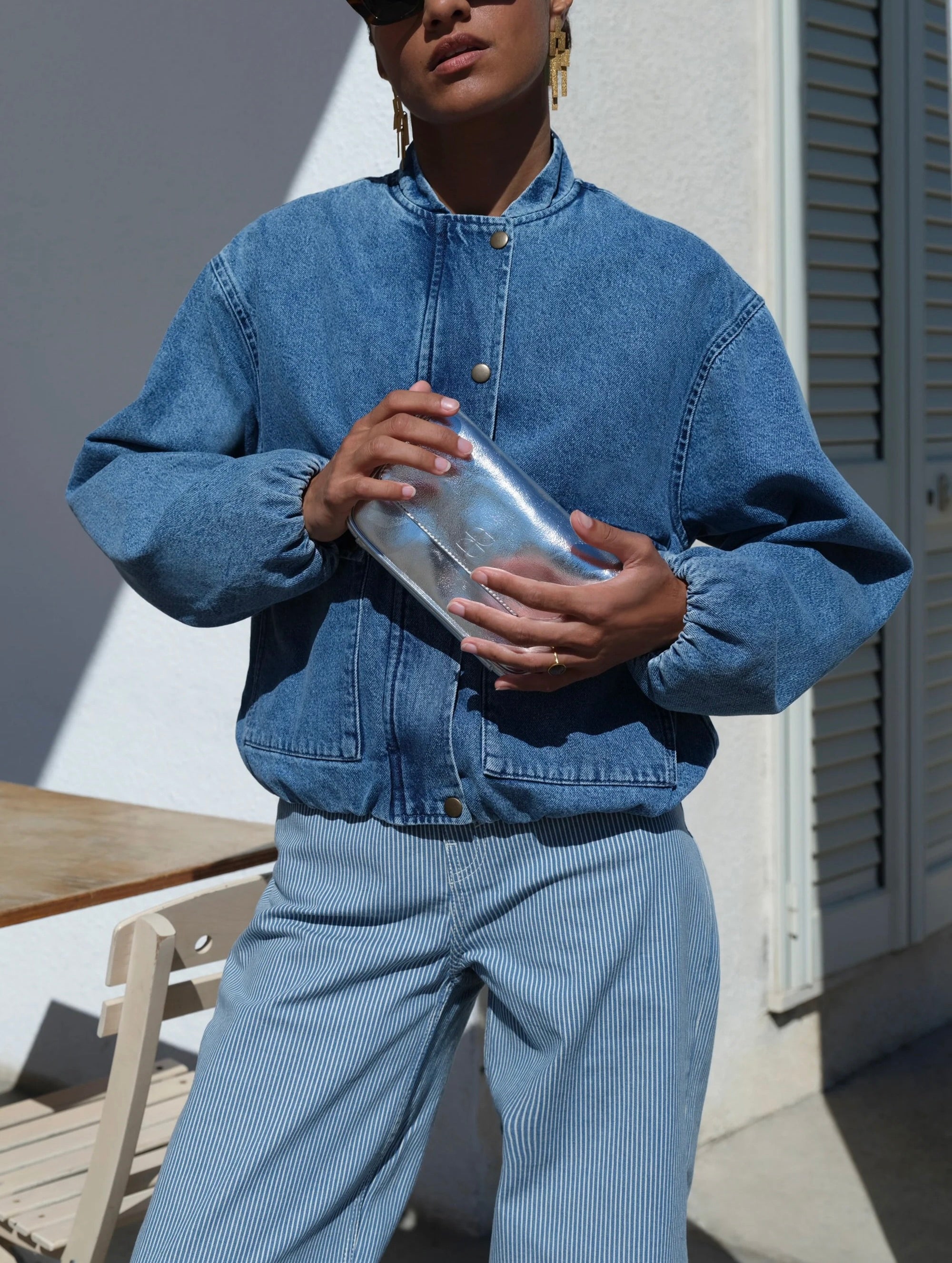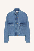 La giacca in denim Maggie è una giacca essenziale dal look rilassato e dalla vestibilità comoda e ampia. Il colletto bomber e la chiusura con bottoni automatici conferiscono a questa giacca uno stile moderno e audace, che coniuga eleganza e semplicità. Le tasche anteriori a filetto aggiungono un tocco funzionale, mentre il denim lavato offre un look senza tempo e rilassato. Questo modello veste la taglia giusta ed è perfetto per uno stile rilassato e contemporaneo.