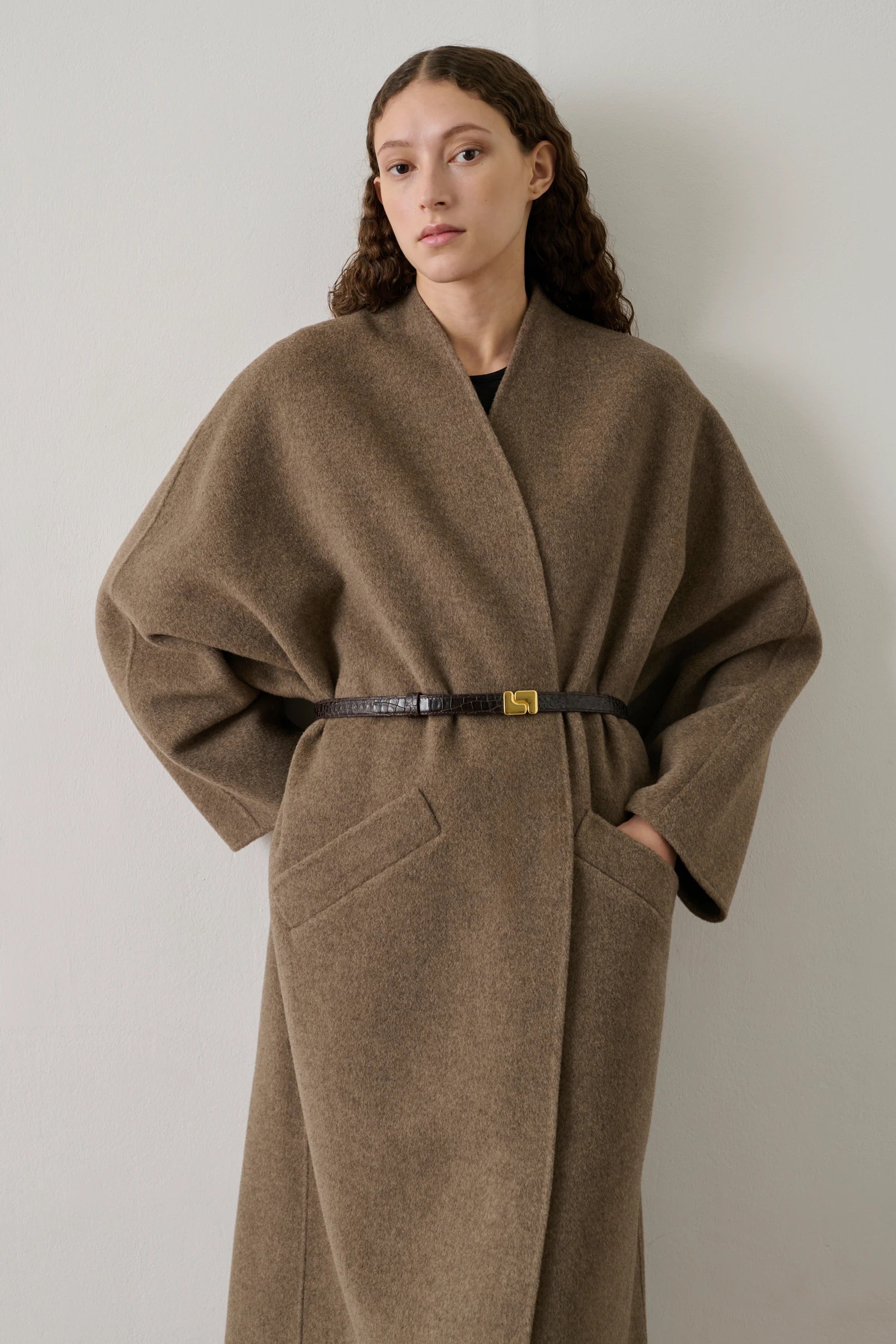 Cintura in pelle stampata coccodrillo marrone scuro