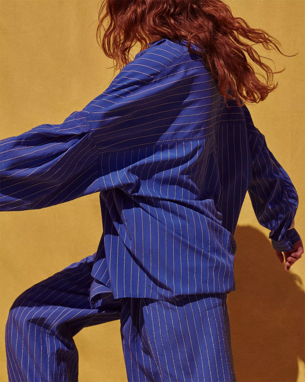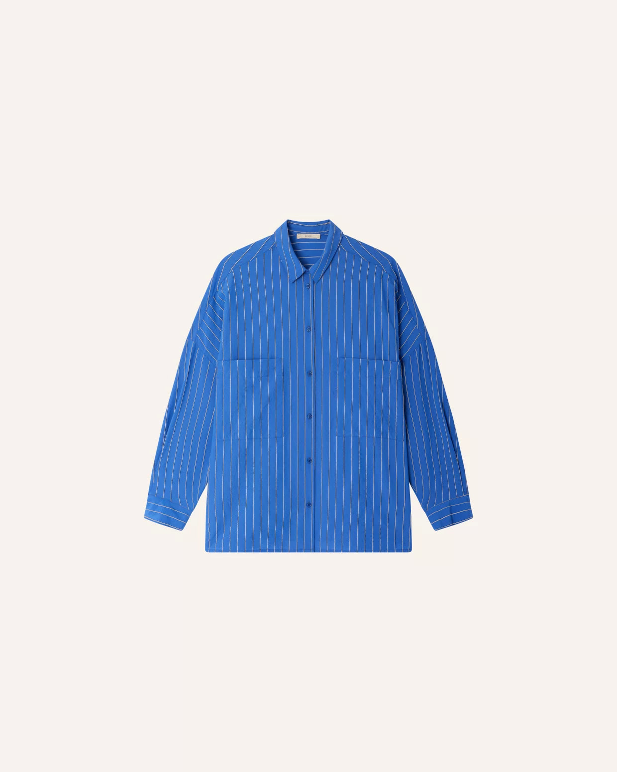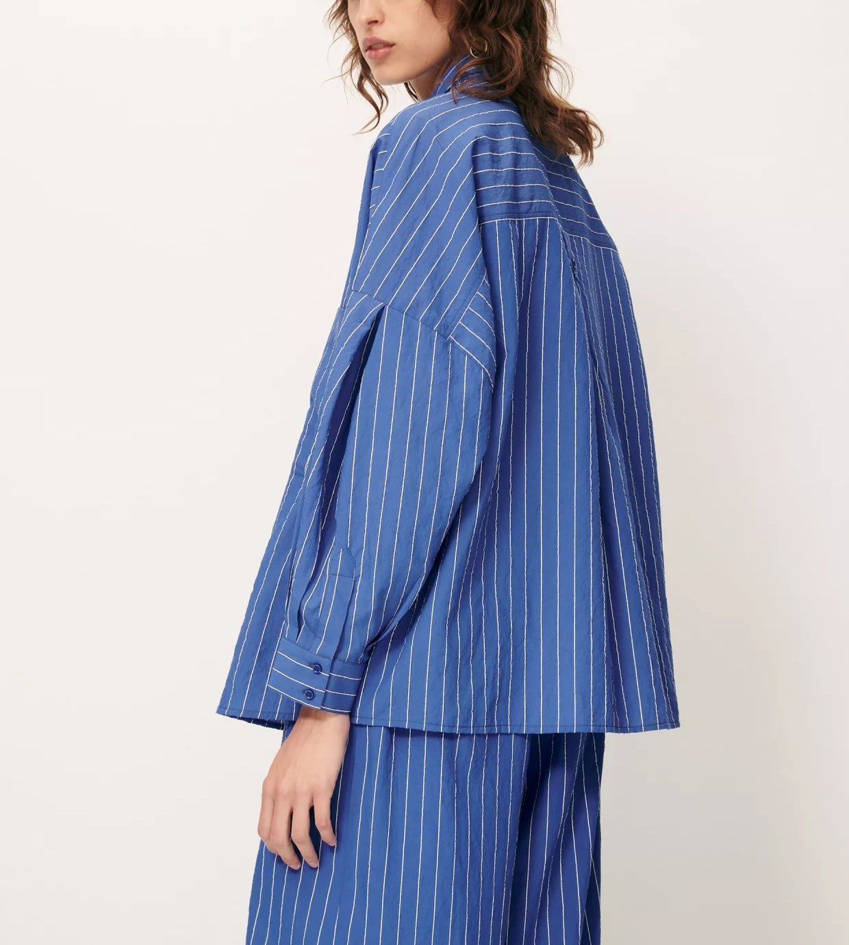 Chemise ample à poches plaquées en popeline compacte effet crinkle à rayures dobby, tissée en Italie.