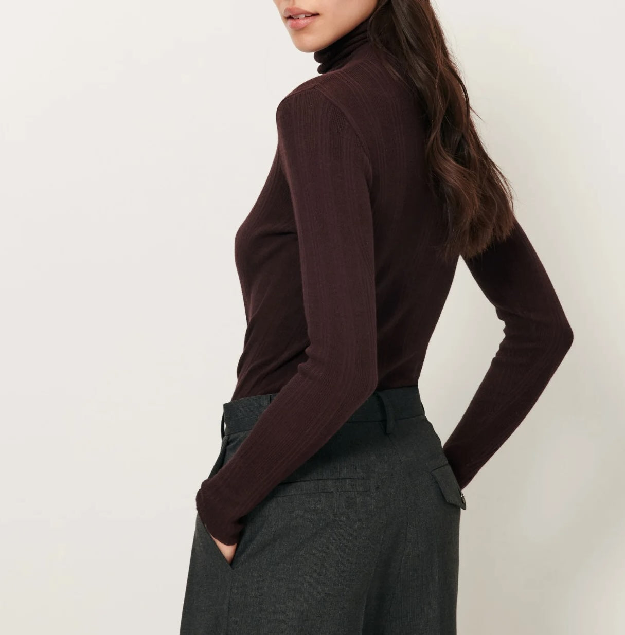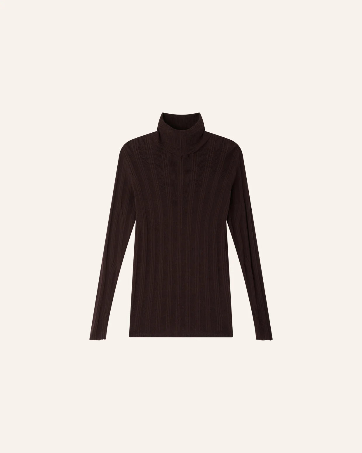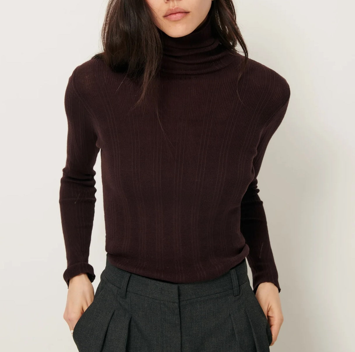 Pull col roulé ajusté maille fine jauge et jeu de côtes graphique aux côtés et aux manches