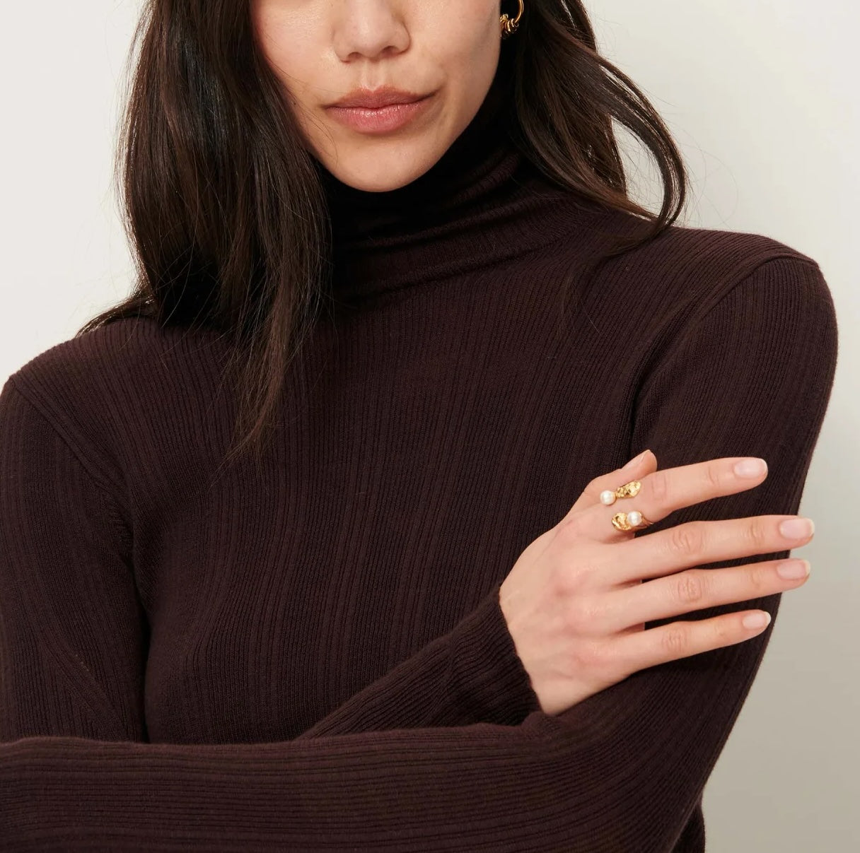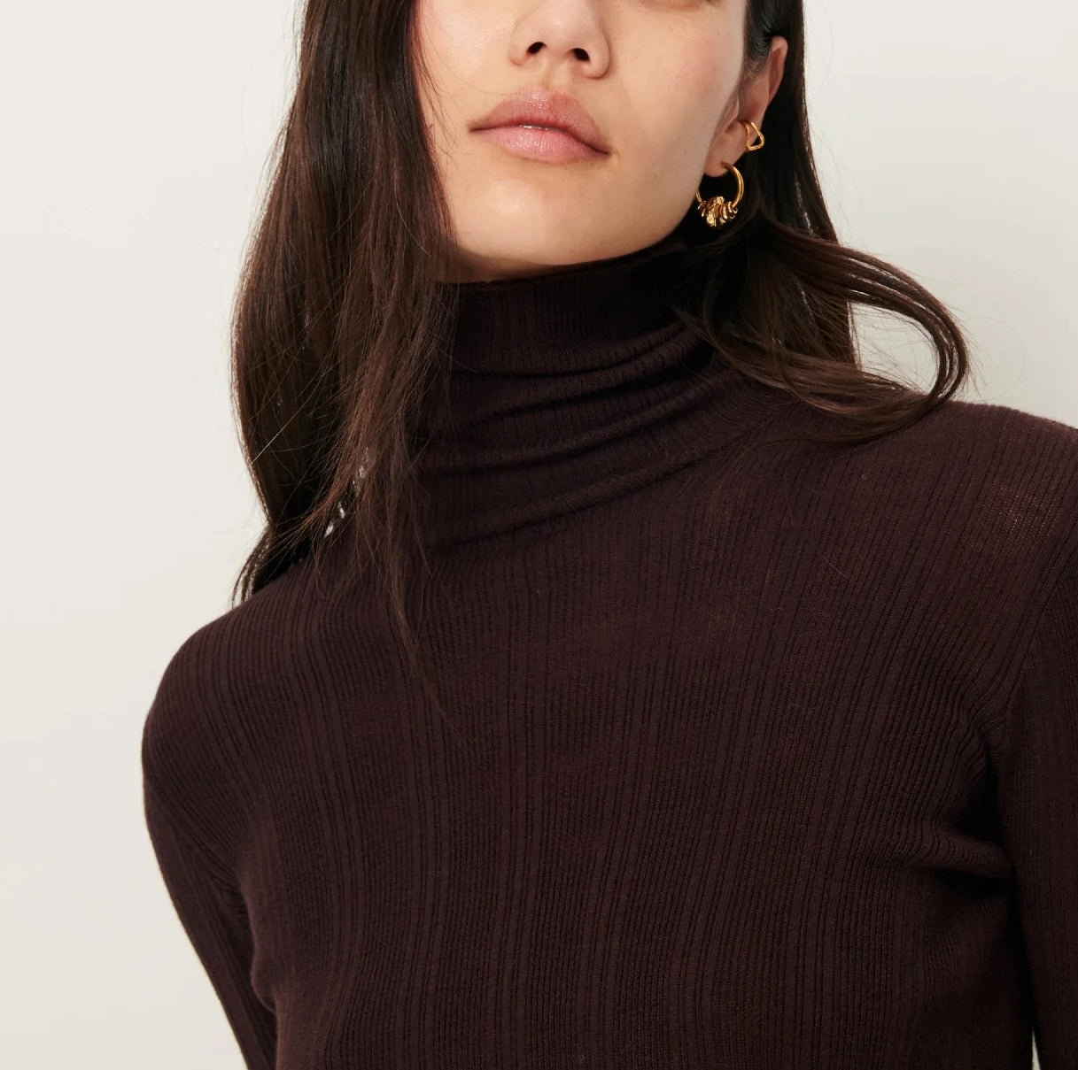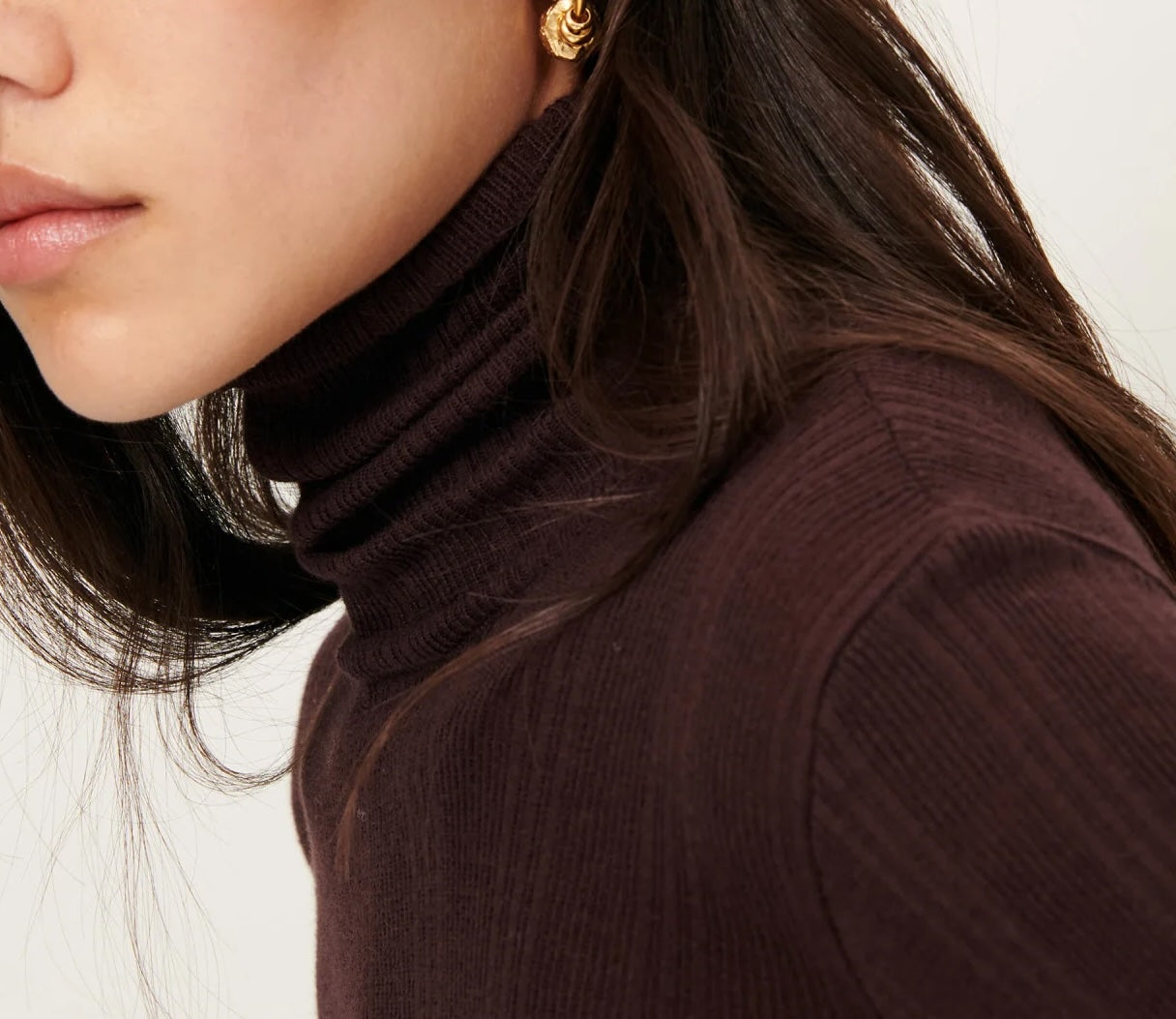 Pull col roulé ajusté maille fine jauge et jeu de côtes graphique aux côtés et aux manches