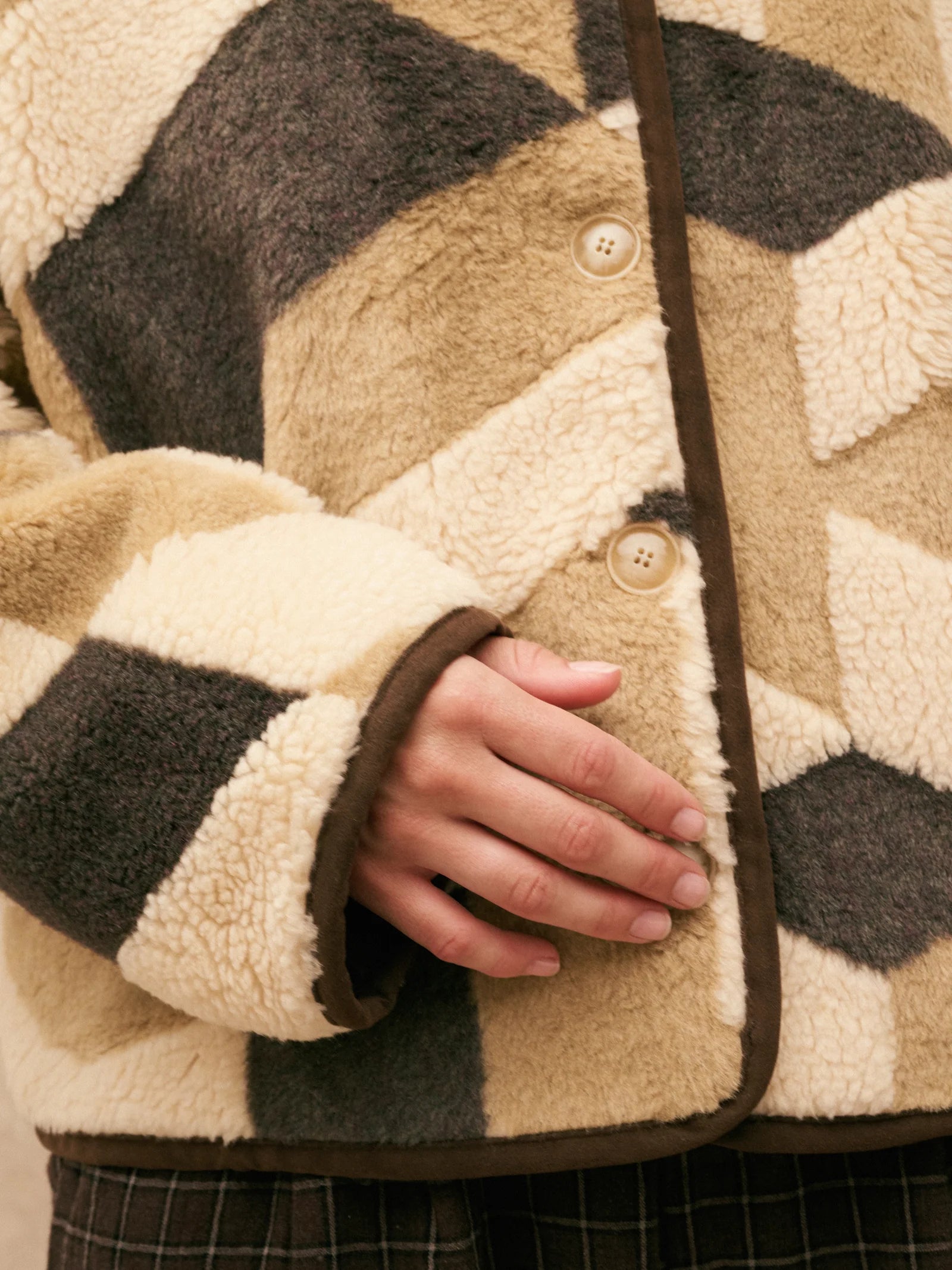 La veste SHIRLEY est une veste en fourrure fantaisie. On adore son motif destructuré.
